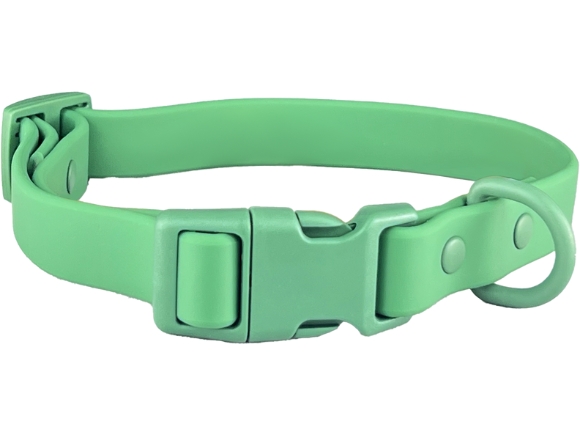 Our Solid Color PVC Dog Collar is designed for durability and comfort. The PVC-coated polyester webbing ensures a waterproof and odor-resistant experience, making it ideal for dogs that love water activities or outdoor adventures.