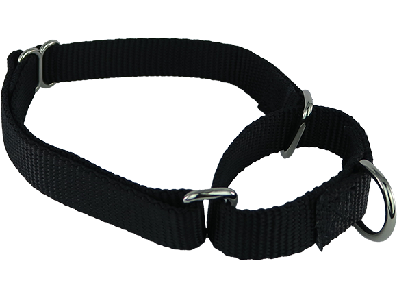 Made from durable high-density nylon with strong metal D-rings, this buckle-free martingale collar tightens slightly under tension to gently correct pulling or escaping, while remaining comfortable for everyday wear.