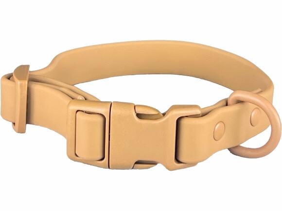 Our Solid Color PVC Dog Collar is designed for durability and comfort. The PVC-coated polyester webbing ensures a waterproof and odor-resistant experience, making it ideal for dogs that love water activities or outdoor adventures.